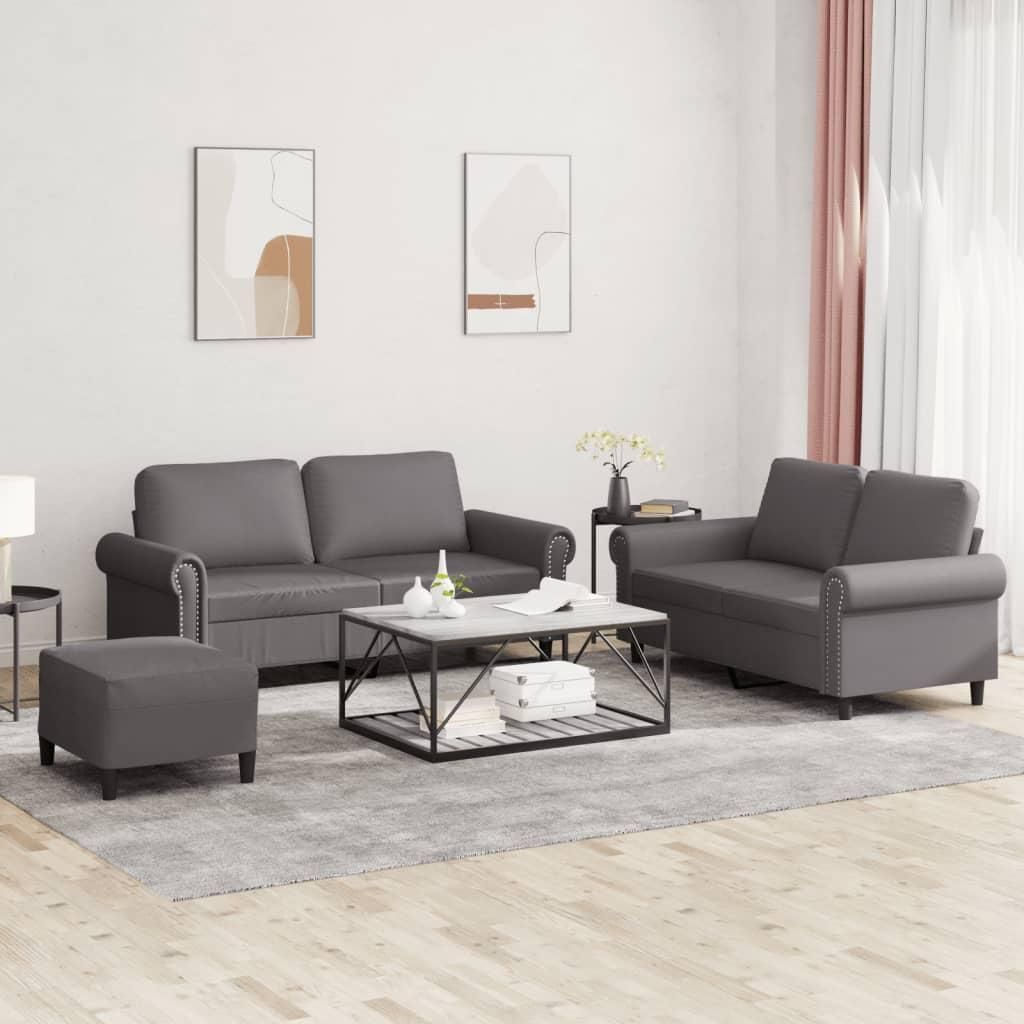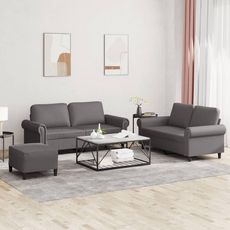 Ensemble de canapes 3 pcs avec coussins Gris Similicuir
