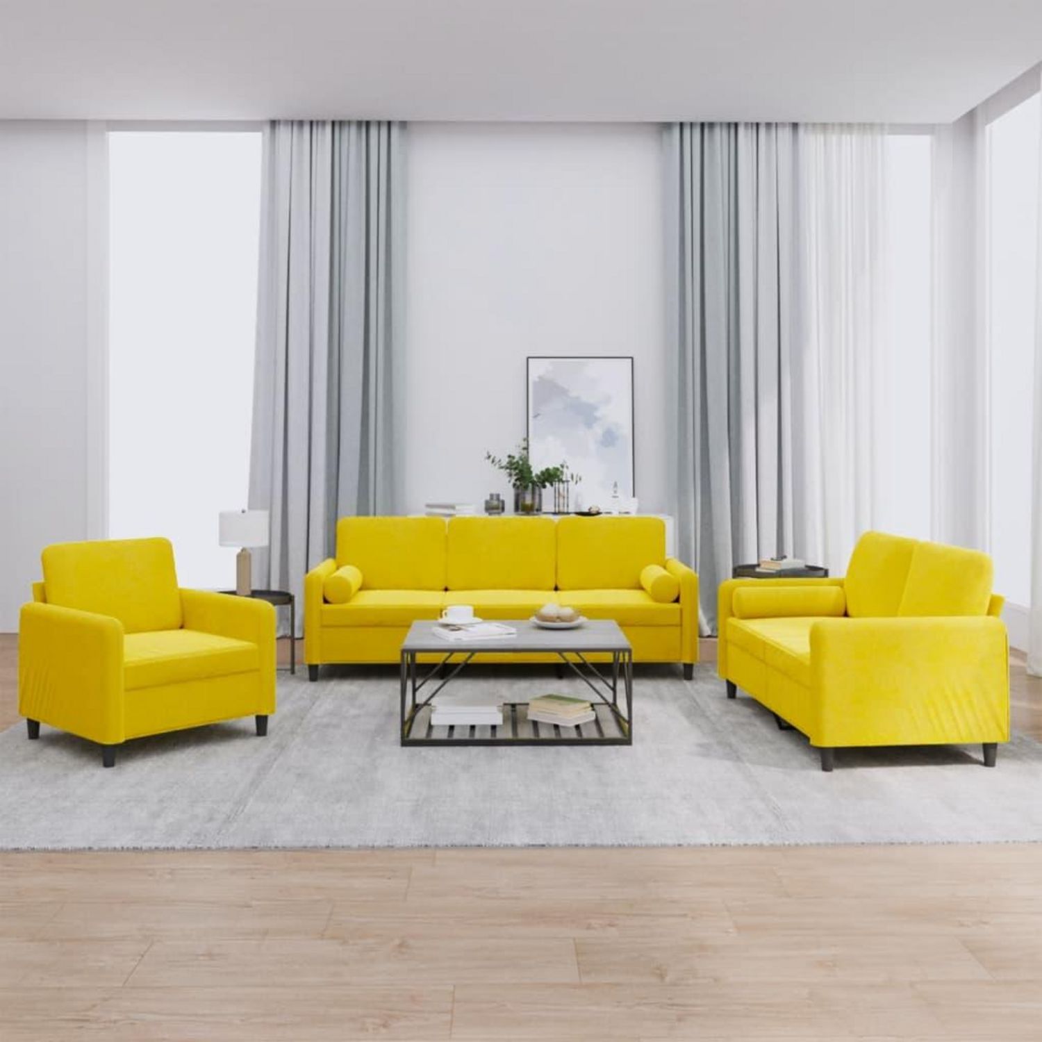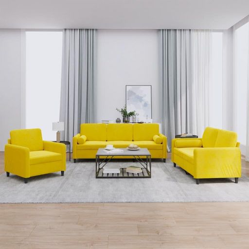 Ensemble de canapes 3 pcs avec coussins jaune velours