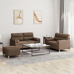 Ensemble de canapes 3 pcs avec coussins marron tissu