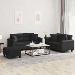 Ensemble de canapes 3 pcs avec coussins noir similicuir