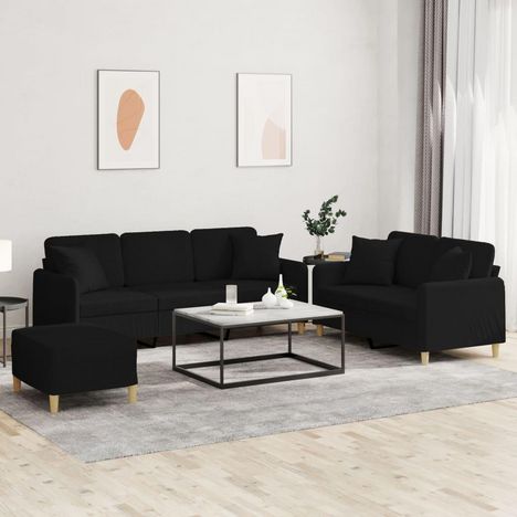 Ensemble de canapes 3 pcs avec coussins noir tissu