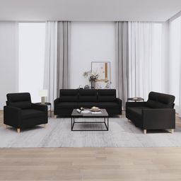 Ensemble de canapes 3 pcs avec coussins Noir Tissu