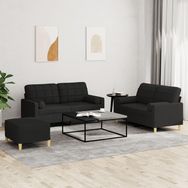Ensemble de canapes 3 pcs avec coussins noir tissu