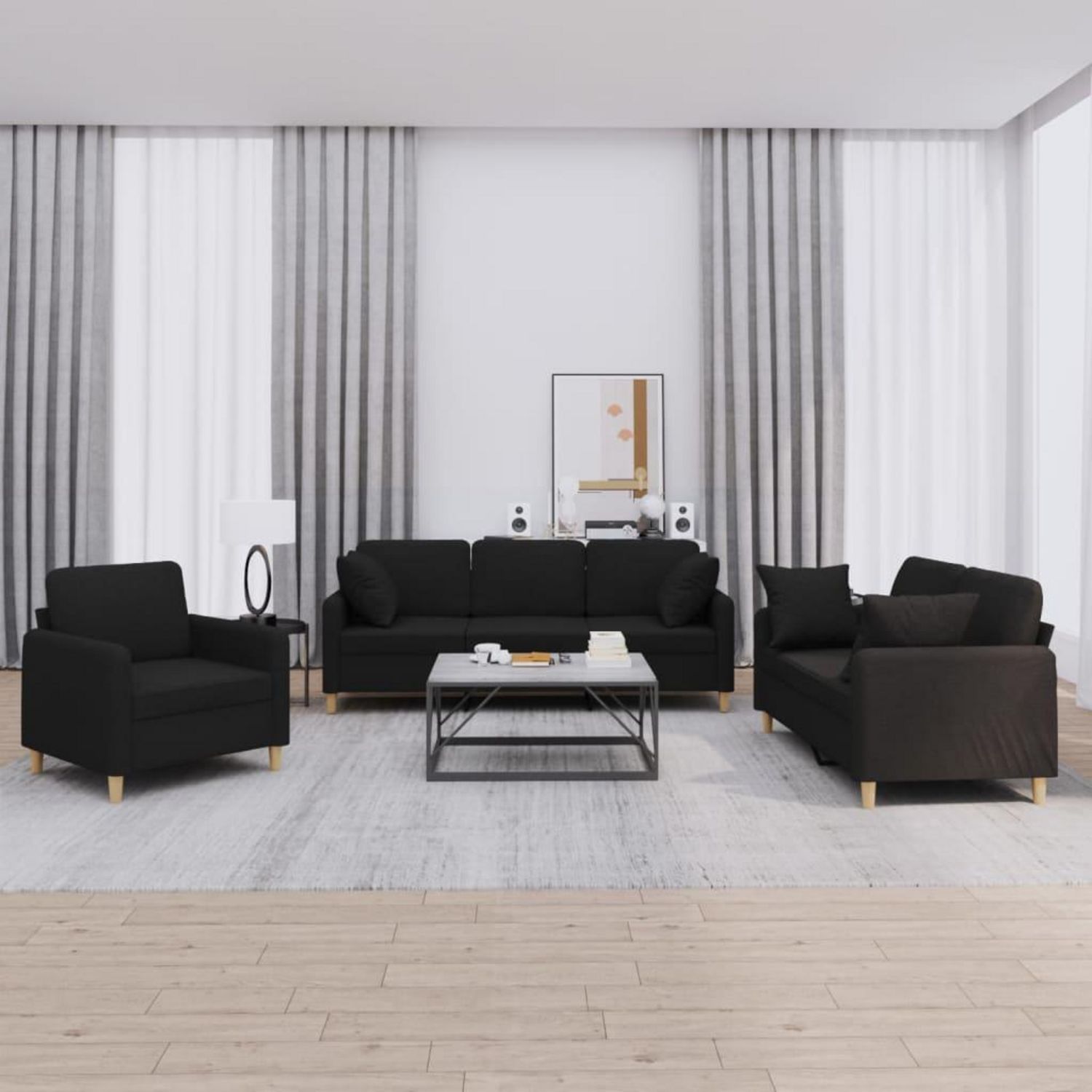 Ensemble de canapes 3 pcs avec coussins noir tissu