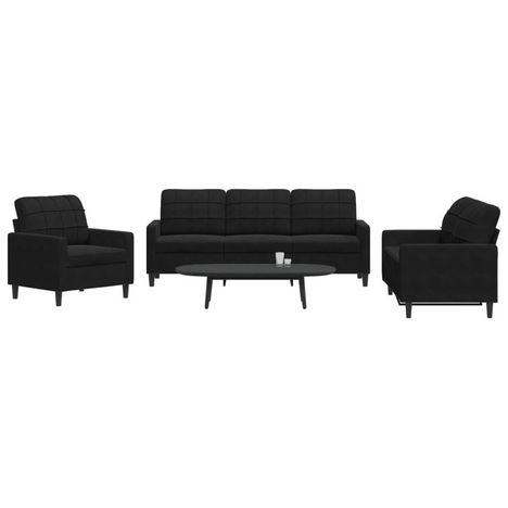 Ensemble de canapes 3 pcs avec coussins Noir Velours