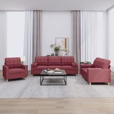 Ensemble de canapes 3 pcs avec coussins rouge bordeaux tissu