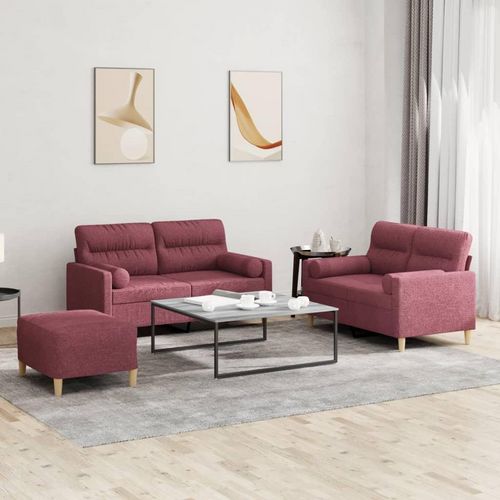 Ensemble de canapes 3 pcs avec coussins rouge bordeaux tissu