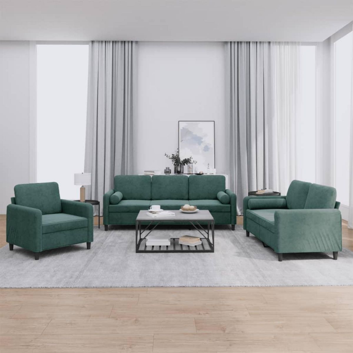 Ensemble de canapes 3 pcs avec coussins vert fonce velours