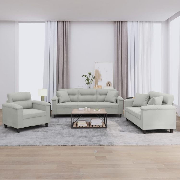 Ensemble de canapes 3 pcs coussins Gris clair Tissu microfibre
