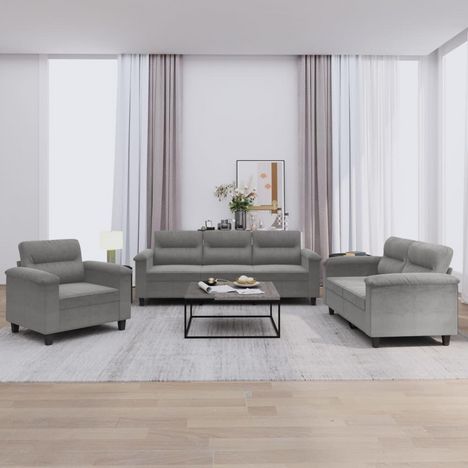 Cet ensemble de canapes est un excellent endroit pour discuter, lire, regarder la television ou simplement vous detendre. Il est destine a etre un point central de votre maison. Microfibre resistant : le microfibre est un tissu synthetique compose de fibres ultra-fines, particulierement resistantes