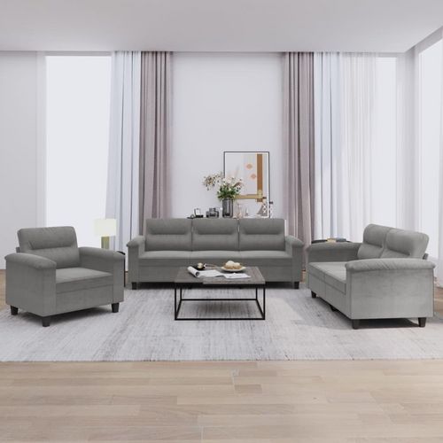 Ensemble de canapes 3 pcs coussins gris fonce tissu microfibre