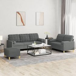 Ensemble de canapes 3 pcs coussins gris fonce tissu