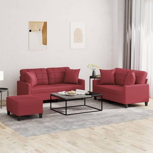 Ensemble de canapes 3 pcs et coussins rouge bordeaux similicuir