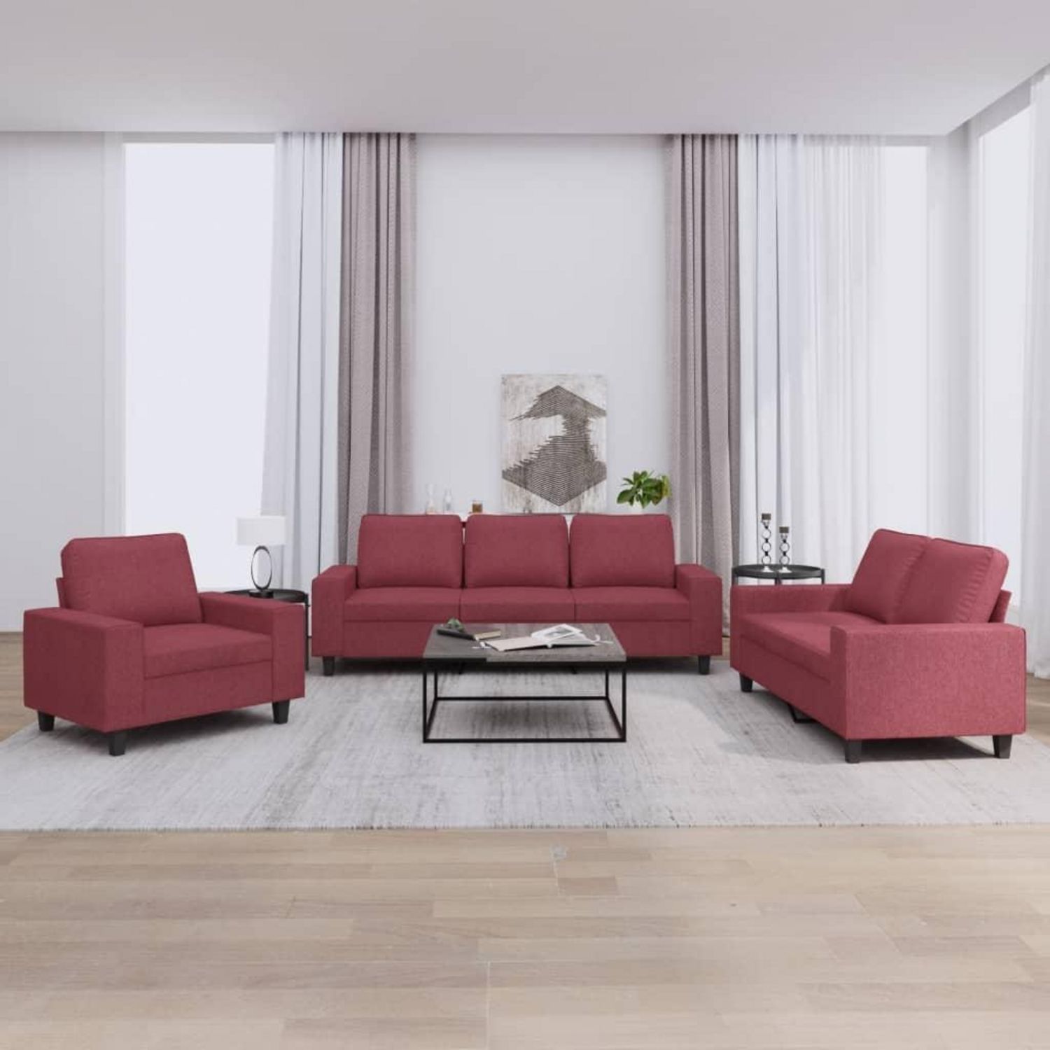 Ensemble de canapes 3 pcs rouge bordeaux tissu