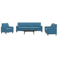 Ensemble de canapes 3pcs et coussins et traversins bleu velours