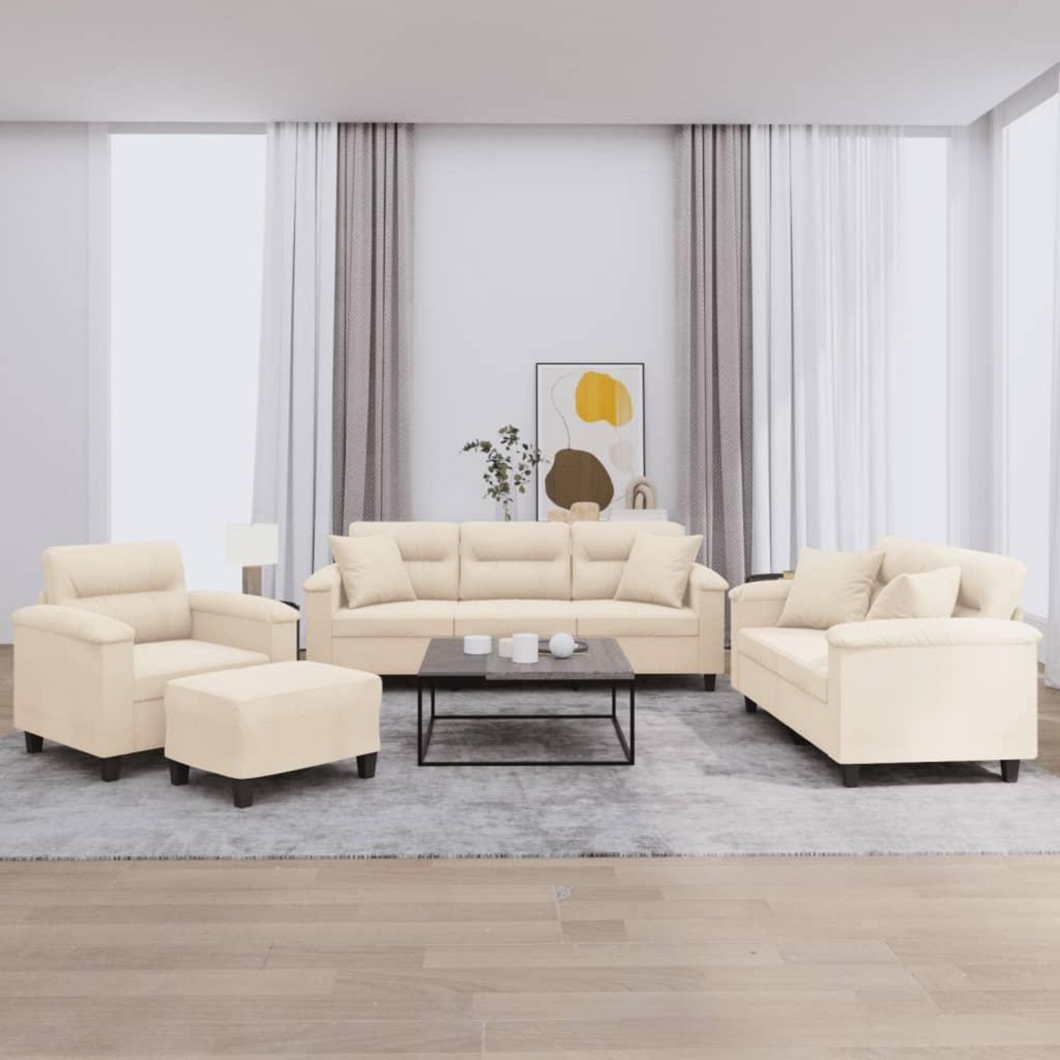Ensemble de canapes 4 pcs avec coussins Beige Tissu microfibre
