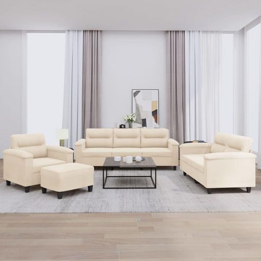 Ensemble de canapes 4 pcs avec coussins beige tissu microfibre