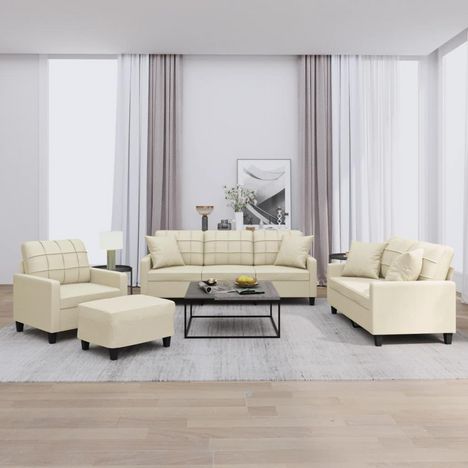Ensemble de canapes 4 pcs avec coussins creme similicuir