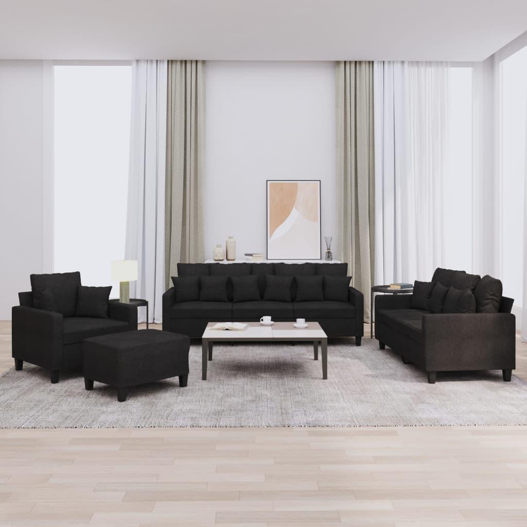 Ensemble de canapes 4 pcs avec coussins noir tissu