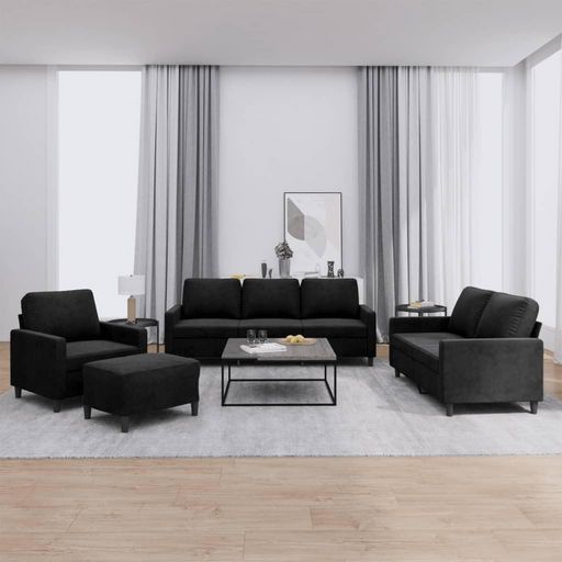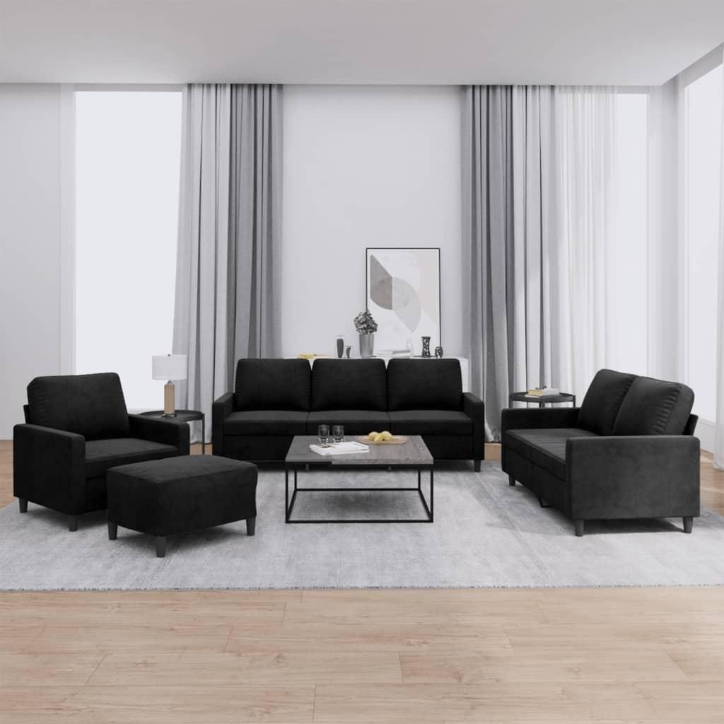 Ensemble de canapes 4 pcs avec coussins Noir Velours