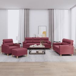 Ensemble de canapes 4 pcs avec coussins rouge bordeaux tissu