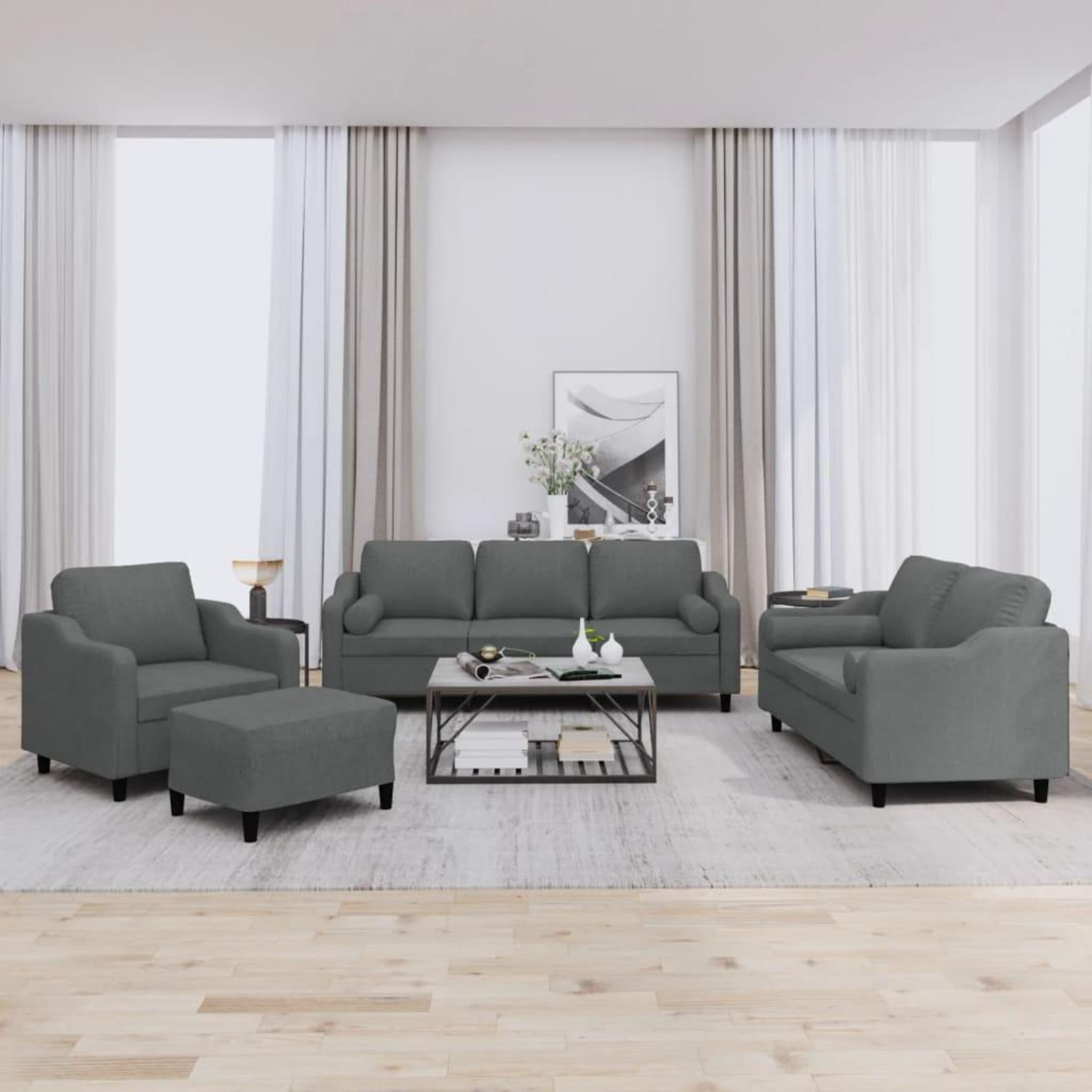 Ensemble de canapes 4 pcs coussins gris fonce tissu