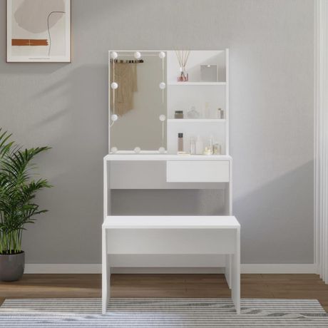 Ensemble de coiffeuse avec LED Blanc Bois d'ingenierie