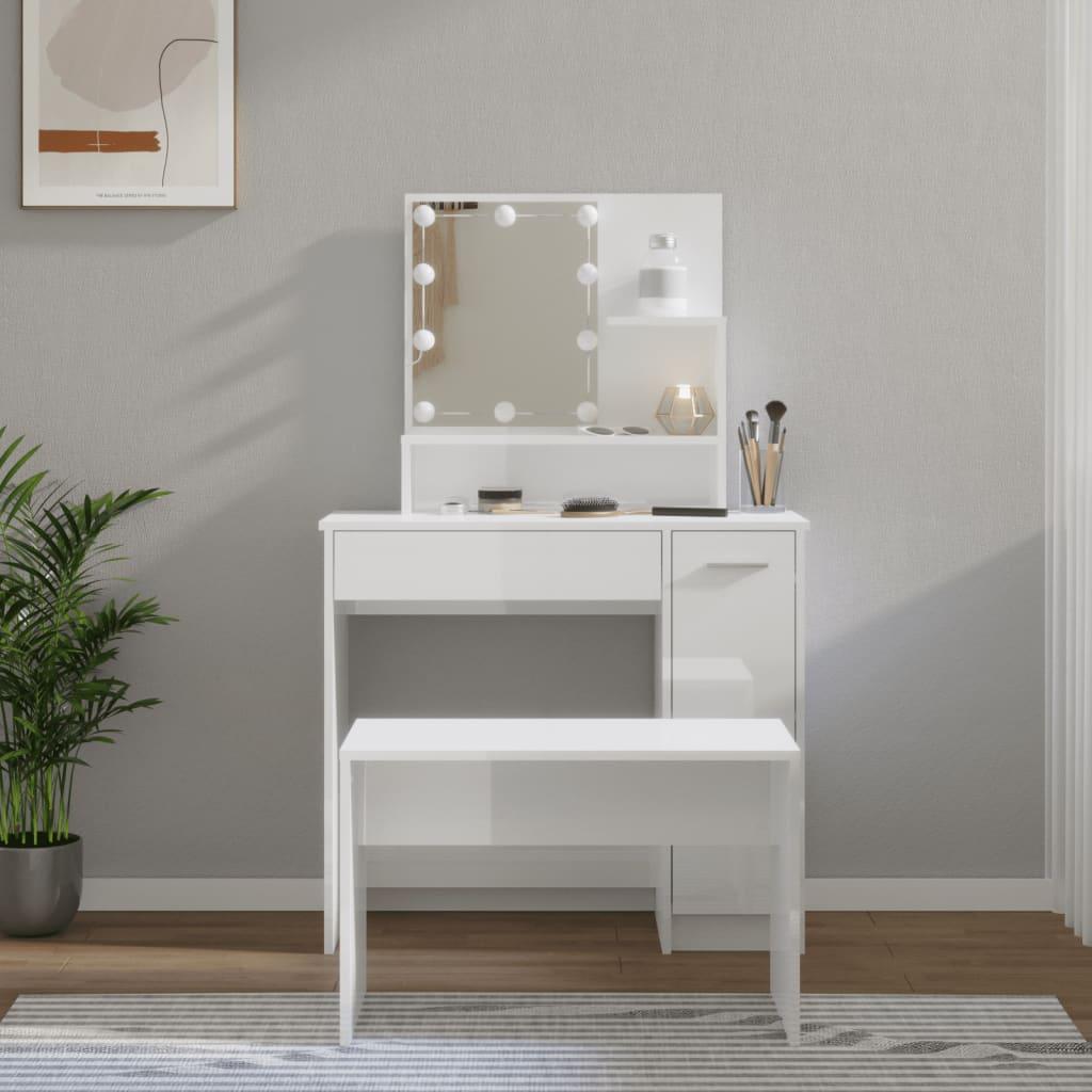 Ensemble de coiffeuse avec LED Blanc brillant Bois d'ingenierie