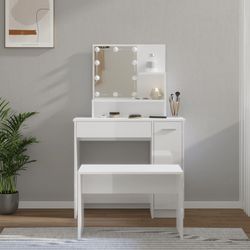En savoir +L'ensemble de coiffeuse tendance donne a votre chambre a coucher un look intemporel et raffine. L'ensemble de coiffeuse avec LED est un supplement parfait au decor de votre chambre a coucher et garde vos cosmetiques a portee de main !