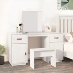 Ensemble de coiffeuse avec miroir Blanc Bois de pin solide