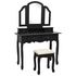 Notre ensemble charmant de coiffeuse et de tabouret est fabrique en bois de paulownia de haute qualite. Son style victorien et sa finition noire epuree sont conçus pour apporter de l'elegance et de la beaute a votre boudoir, salon personnel ou vestiaire. La finition exquise est une caracteristique exceptionnelle ajoutee de cet ensemble de table et de tabouret.