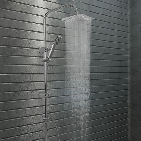 Cet ensemble de douche a deux pommes de douche est la solution ideale pour une experience de douche luxueuse avec une pomme de douche pluie et une pomme de douche a main. Le design elegant, les lignes epurees et l'aspect brillant lui permettent de s'harmoniser parfaitement dans la decoration de votre salle de bain.