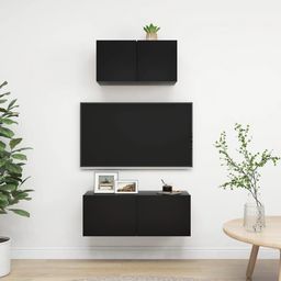 Ensemble de meuble TV 2 pcs Noir Bois d'ingenierie
