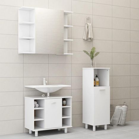 Cet elegant ensemble de meubles de salle de bain comprend 1 armoire de taille moyenne, 1 armoire sous lavabo et 1 armoire a miroir. Il genere un espace de rangement supplementaire pour votre salle de bain avec un aspect superbe et soigne.