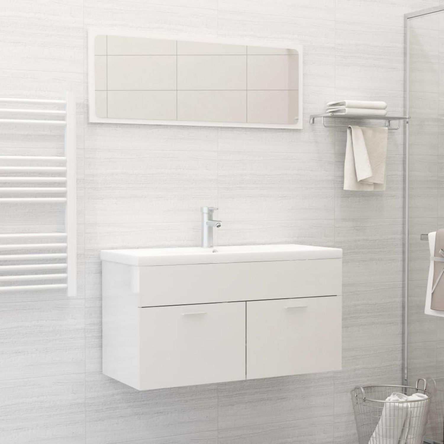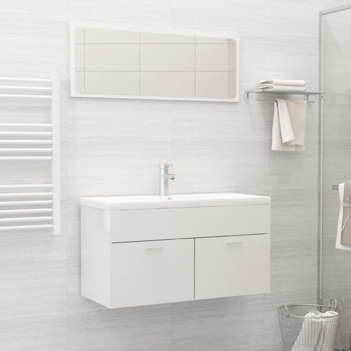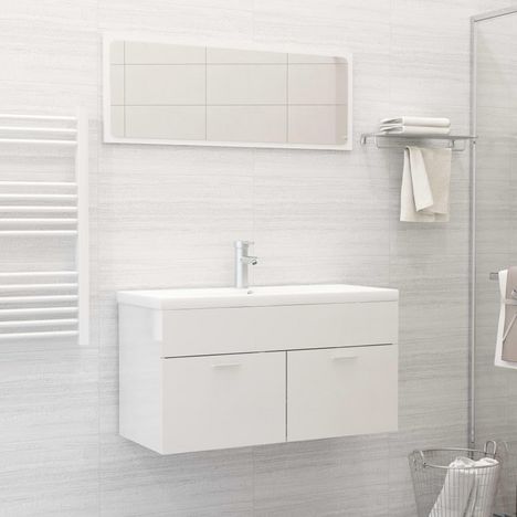 Ensemble de meubles de bain Blanc brillant Bois d'ingenierie