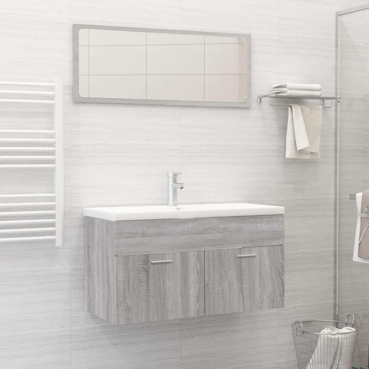 Ensemble de meubles de salle de bain 2 pcs Sonoma gris
