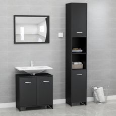Cet elegant ensemble de meubles de salle de bain, avec 1 armoire haute, 1 armoire sous lavabo et 1 miroir, cree un espace de rangement supplementaire pour votre salle de bain avec un aspect superbe et soigne.