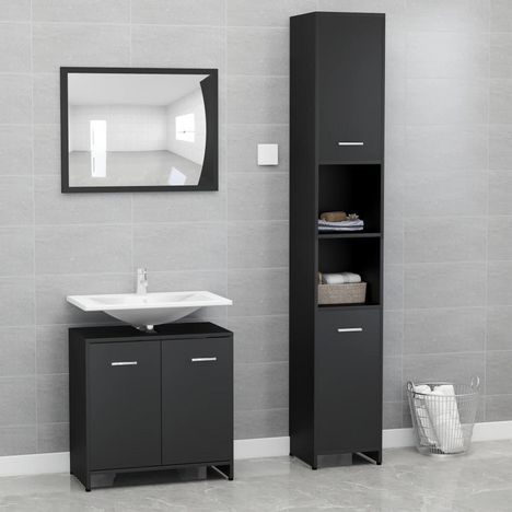 Ensemble de meubles de salle de bain 3 pcs Noir Bois ingenierie