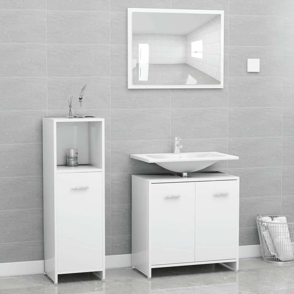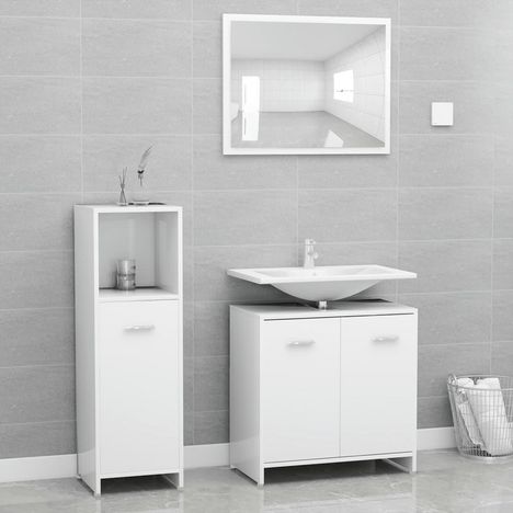 Ensemble de meubles de salle de bain 3pcs Blanc Bois ingenierie