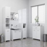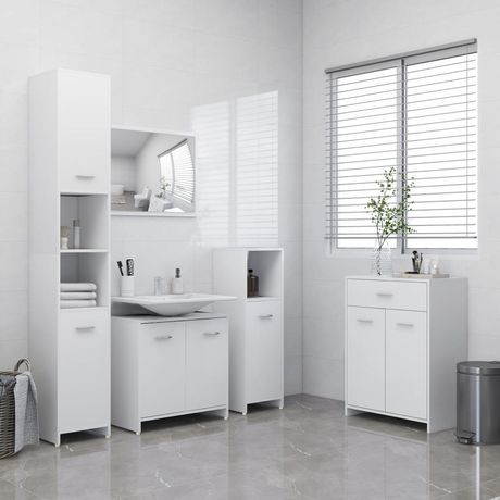 Avec cet ensemble de meubles de salle de bain de 4 pieces, vous pouvez creer un espace de rangement supplementaire pour votre salle de bain avec un aspect remarquable et bien range. Les lignes epurees et le design elegant s'integrent parfaitement a votre maison.