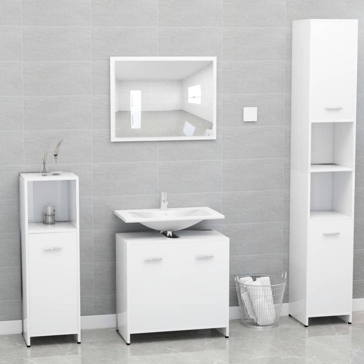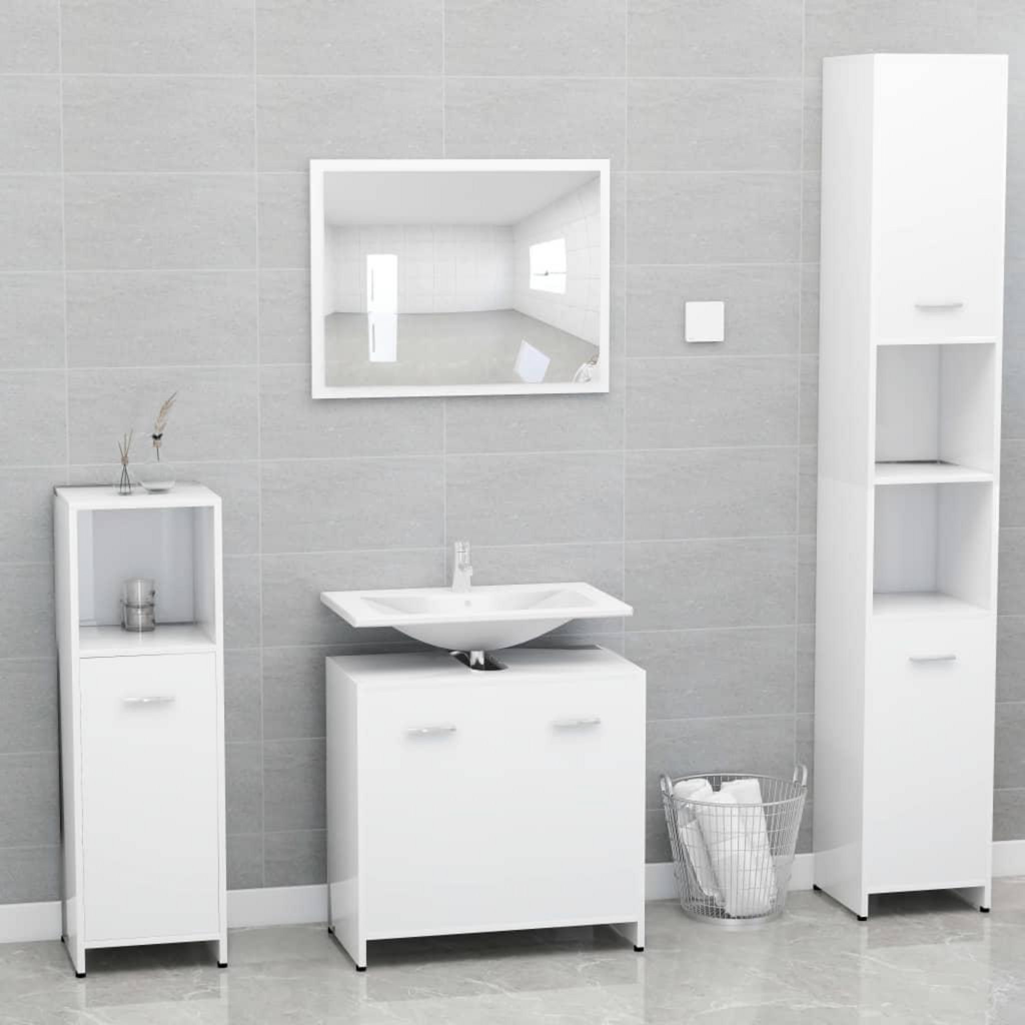 Avec cet ensemble de meubles de salle de bain, vous pouvez creer un espace de rangement supplementaire pour votre salle de bain avec un aspect propre et ordonne. Les lignes epurees et le design elegant se fondent parfaitement dans votre salle de bain.
