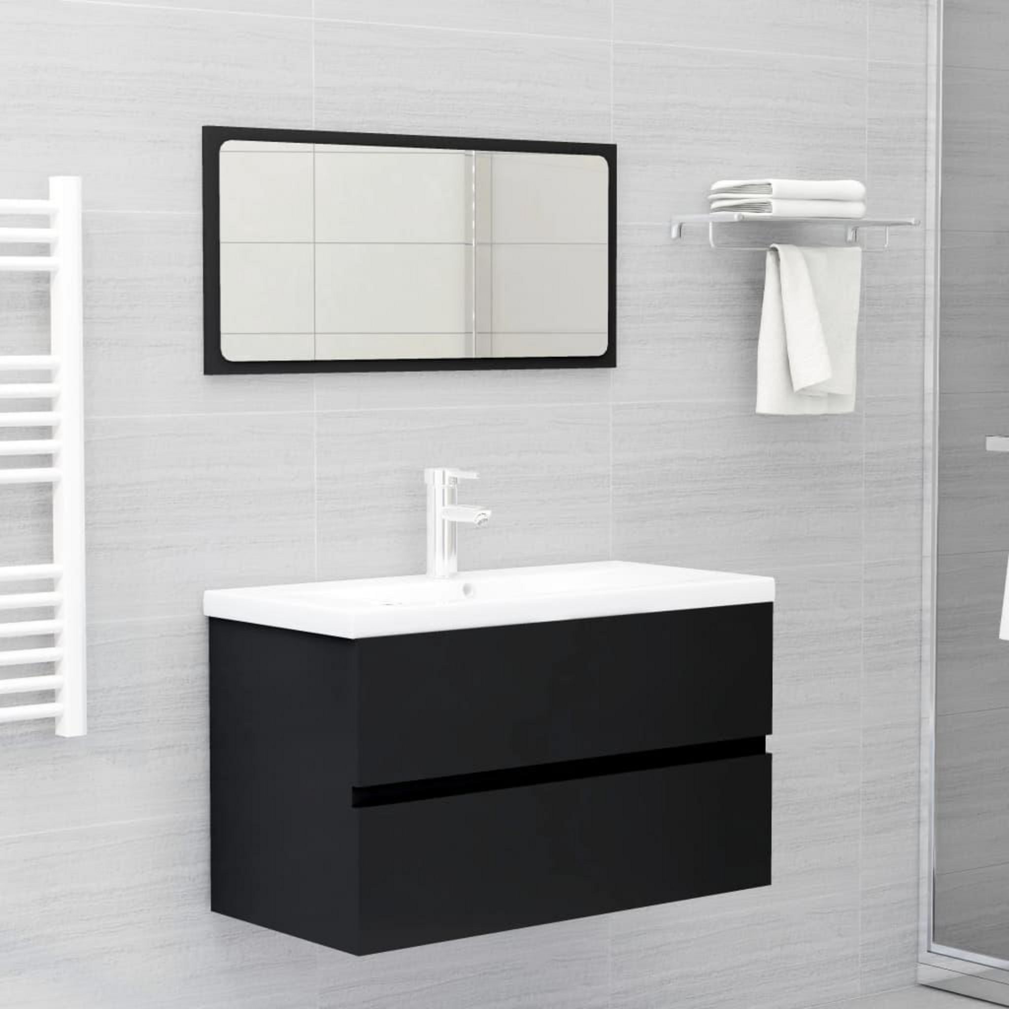 Ensemble de meubles de salle de bain noir bois d'ingenierie