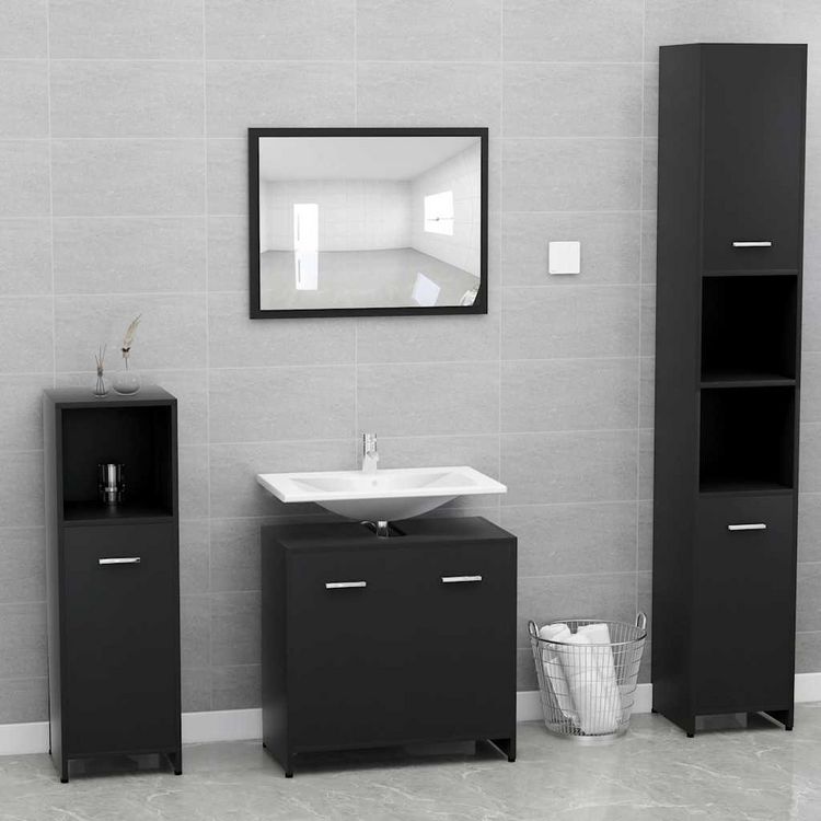 Ensemble de meubles de salle de bain Noir Bois d'ingenierie