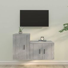 Ensemble de meubles TV 2 pcs gris beton bois d'ingenierie