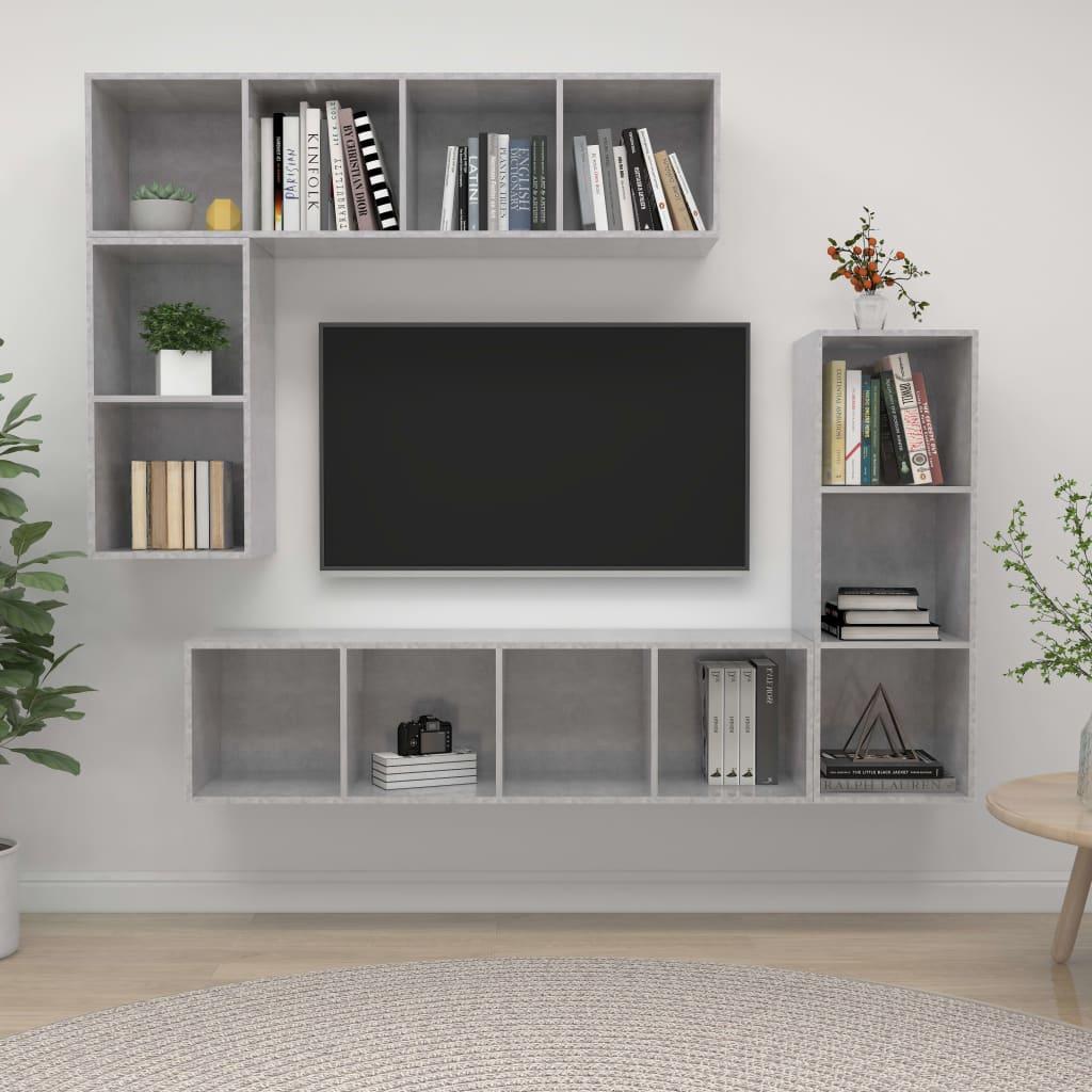 Ensemble de meubles TV 4 pcs Gris beton Bois d'ingenierie