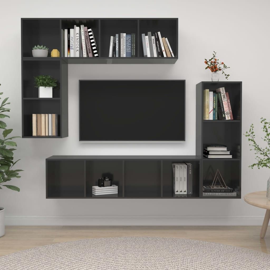 Ensemble de meubles TV 4 pcs Gris brillant Bois d'ingenierie