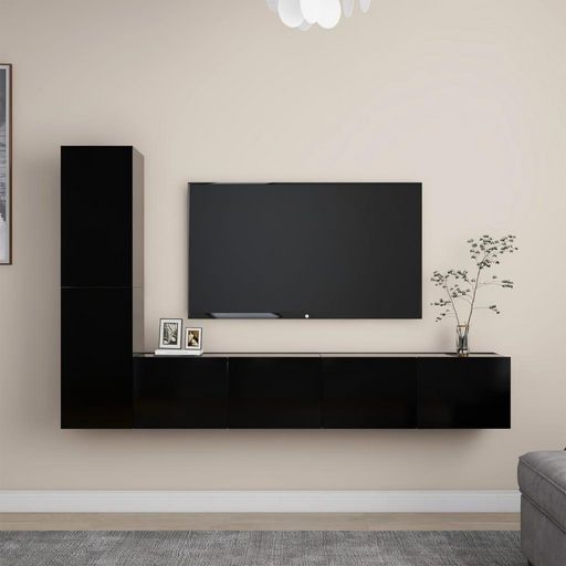 Ensemble de meubles TV 4 pcs Noir Bois d'ingenierie