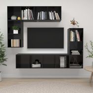 Ensemble de meubles TV 4 pcs Noir brillant Bois d'ingenierie