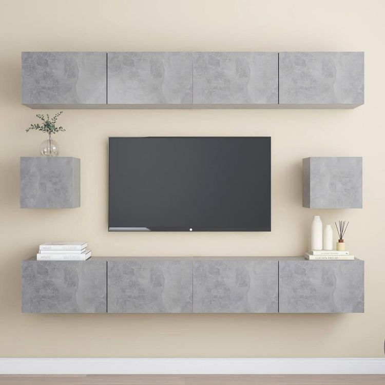 Ensemble de meubles TV 6 pcs Gris beton Bois d'ingenierie