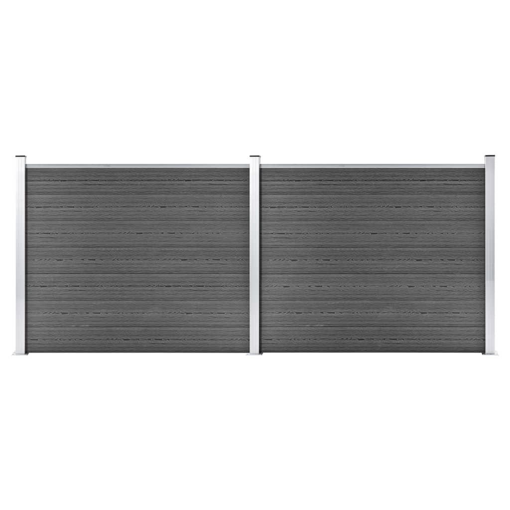 Ensemble de panneau de cloture WPC 353x146 cm Noir